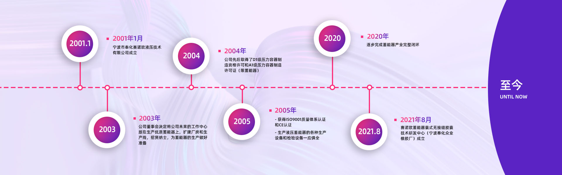 寧波市奉化賽諾歐液壓技術(shù)有限公司創(chuàng)建于2001年7月,是國內(nèi)優(yōu)秀的液壓蓄能器專業(yè)制造公司,制造設(shè)備齊全,檢測手段完善。同時(shí)也是探索蓄能器囊式結(jié)構(gòu)一體化的科研創(chuàng)新型企業(yè)。 2001年,公司董事會(huì)決定將公司未來的工作重心放在生產(chǎn)優(yōu)質(zhì)蓄能器上。公司一方面著手于廠房擴(kuò)建和生···